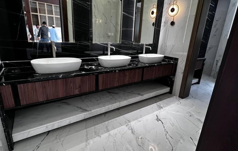نقدّم في عشارج حلولًا متكاملة في توريد وتنفيذ أعمال الرخام بأعلى معايير الجودة والدقة. نعمل على تنفيذ الأرضيات، الجدران، السلالم، والمطابخ باستخدام رخام مختار بعناية، مع تشطيب احترافي يضمن المتانة والجمال في آنٍ واحد.
